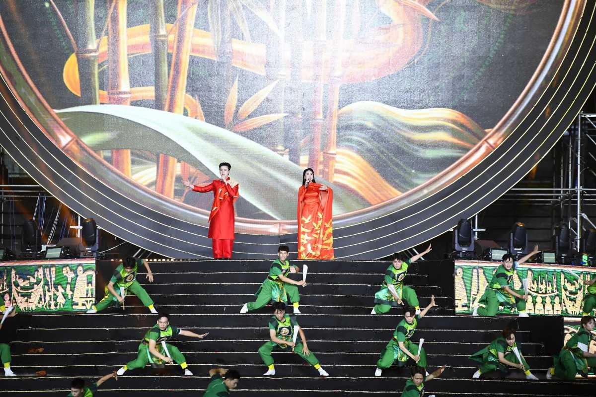 The opening performance performed by Tung Duong created an impression with a large scene of hundreds of actors in ethnic costumes, combined with symphonic music mixed with rock and lighting effects.