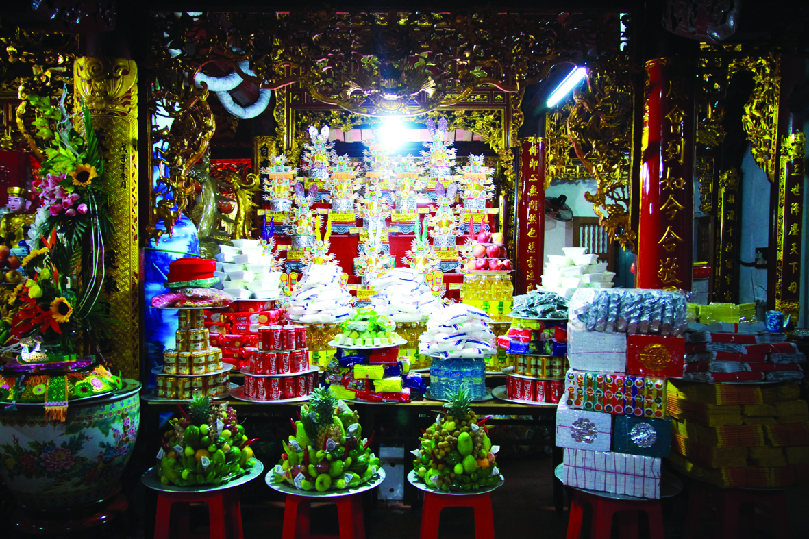Một cảnh thưởng trà trong giá Chầu Cửu của bà đồng N.T.L. |