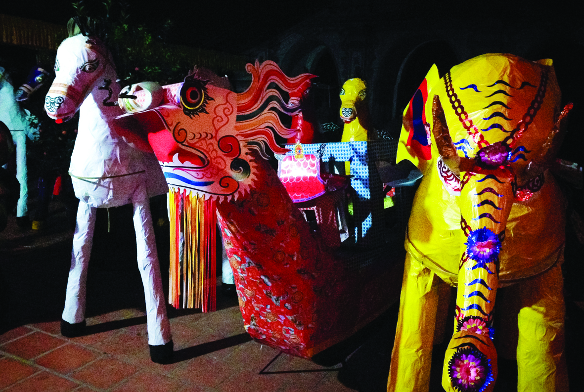 Mã được chuẩn bị cho một buổi hầu đồng được bày trước phủ Vân Cát. |