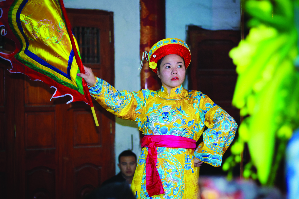 Lễ vật được chuẩn bị cho một buổi hầu đồng tại phủ Vân Cát (thuộc quần thể di tích Phủ Dầy). Do đây là trung tâm của tín ngưỡng thờ Mẫu ở Việt Nam theo tương truyền, đây là nơi giáng sinh cũng là nơi hóa của Thánh mẫu Liễu Hạnh do vậy mà nhiều thanh đồng chọn nơi đây để mở phủ và hầu đồng. |