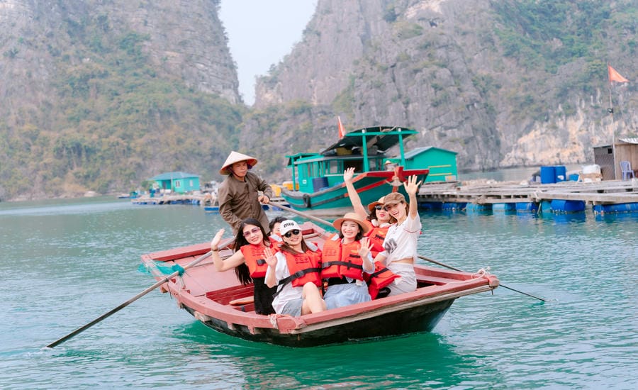 In the afternoon, the boat stops in the bay, for tourists to take a bamboo boat or kayak to explore Vung Vieng fishing village. The village is 25km from the mainland, and is dubbed by international newspapers as one of the 16 most beautiful fishing villages in the world.