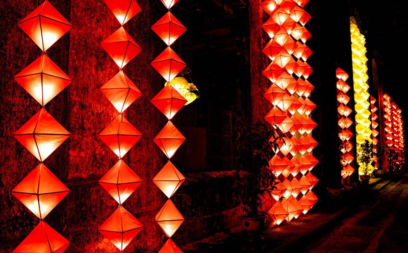 The full moon in January in the old palace has the custom of displaying lights. The royal palace lit tens of thousands of Quang lights shining at the full moon night.