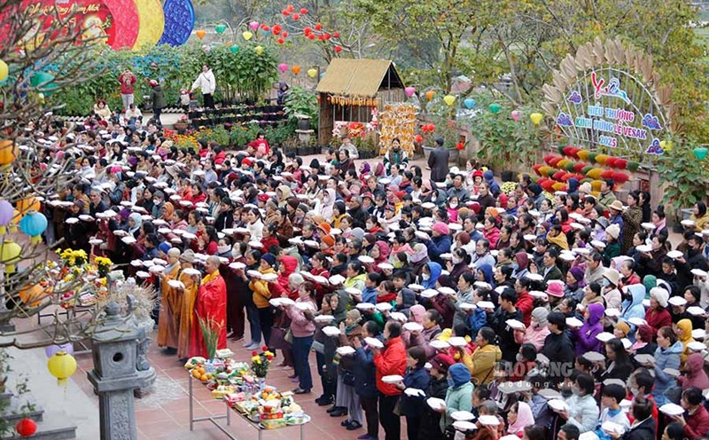 On the morning of 9.2, thousands of people and tourists attended the prayers at the beginning of the year at Linh Quang Pagoda, Dien Bien (bordering Vietnam - Laos).