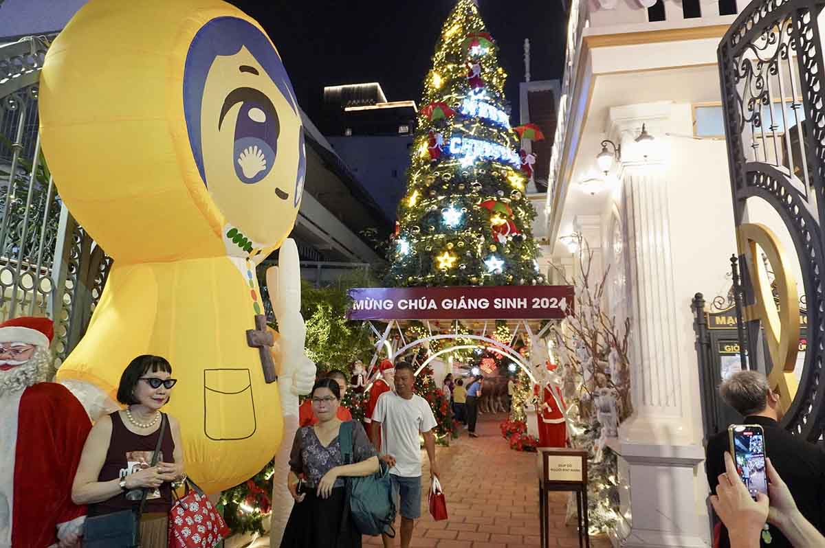 HCMC - Celebrating the birth of Jesus, this year Mac Ty Nho church is decorated more specially with a rotating Christmas tree and giant birthday cake, making many people excited.