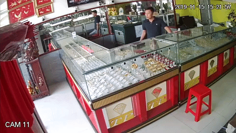 Camera an ninh ghi lại toàn cảnh 2 thanh niên lạ mặt bịt kín xông vào tiệm vàng Thông Phương, huyện Hóc Môn, TPHCM. Một thanh viên đi trước vừa vào trong liền rút súng bắn về phía chủ tiệm vàng. Thanh niên đi sau dùng búa đập tủ kính, nhanh tay gom vàng cho vào túi. Sau khi lấy đủ số vàng hai đối tượng nhanh chân lên xe tẩu thoát. Vụ cướp chỉ vỏn vẹn xảy ra trong 30 giây.