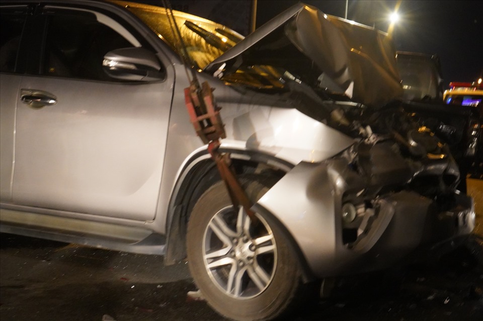 TPHCM - Đến gần 23h ngày 2.8, lực lượng chức năng vẫn đang phong tỏa hiện trường, điều tra làm rõ vụ tai nạn liên hoàn giữa 9 xe ô tô trên cao tốc lúc TPHCM – Long Thành – Dầu Giây, đoạn qua dốc cầu Long Thành, hướng Đồng Nai về TPHCM.
