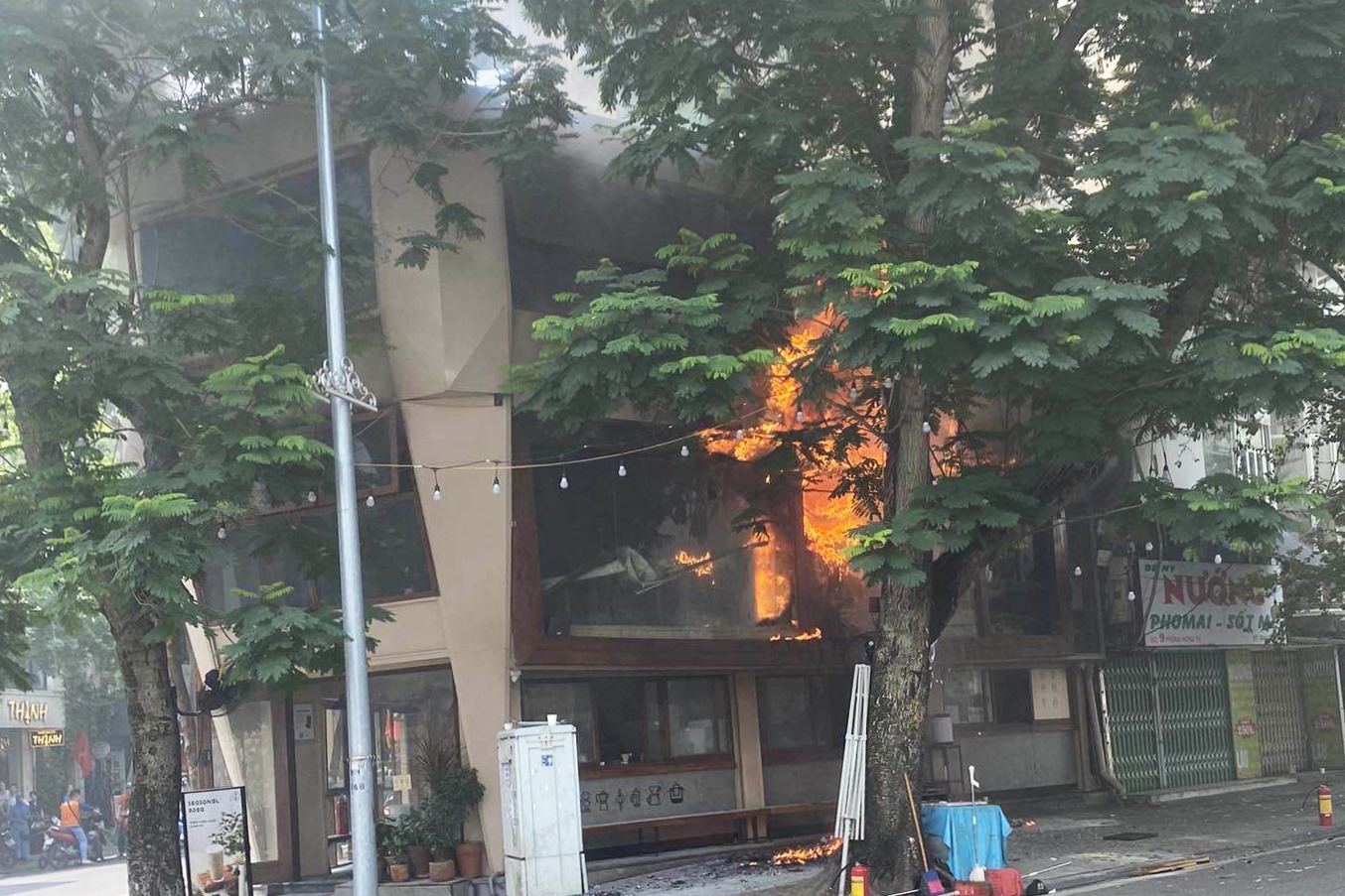 Hà Nội - Quán cà phê trên phố Hàng Cót (quận Hoàn Kiếm) bốc cháy dữ dội kèm nhiều tiếng nổ lớn.