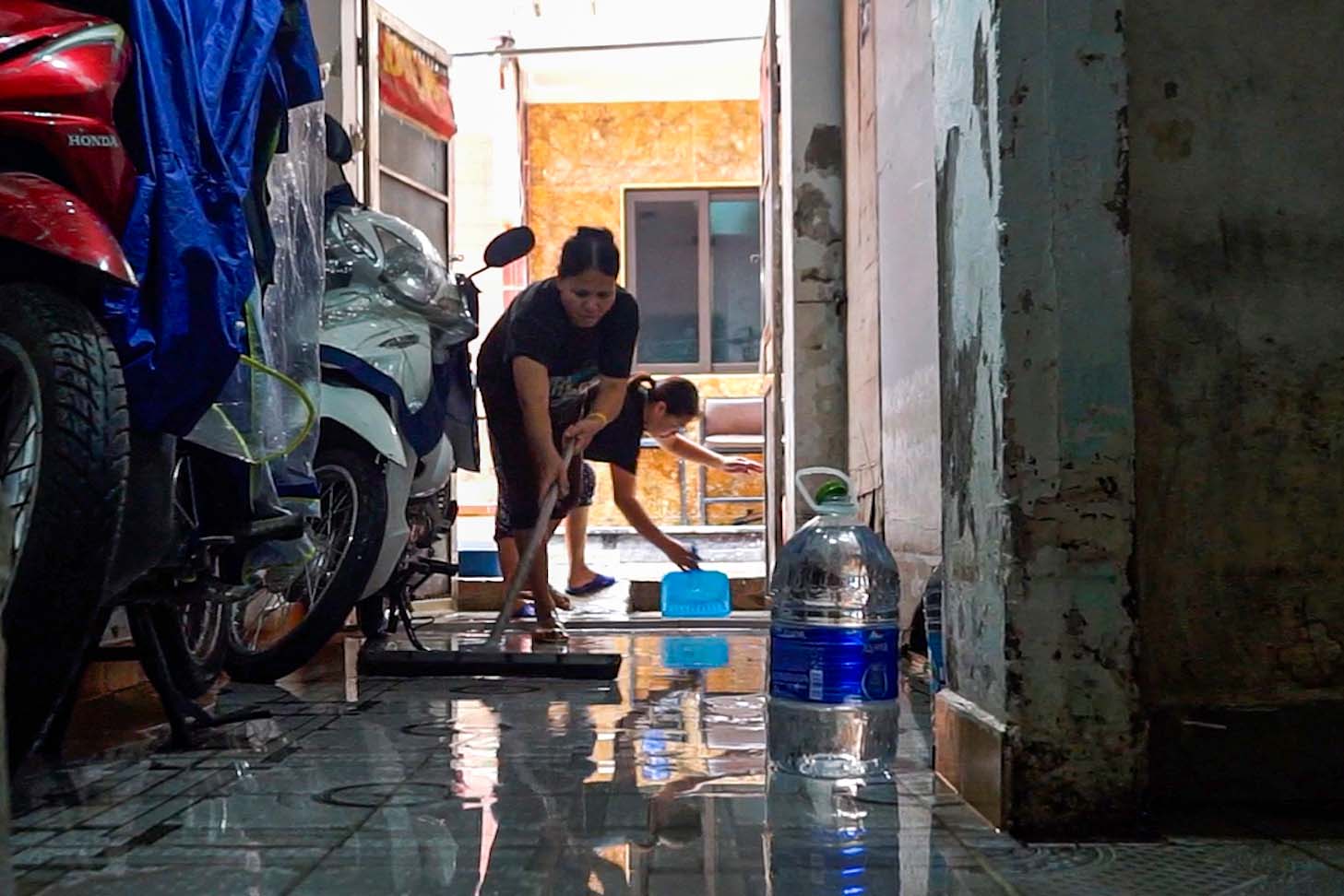 Floodwaters continue to flow wildly into houses in Hanoi, relief teams strive to reach