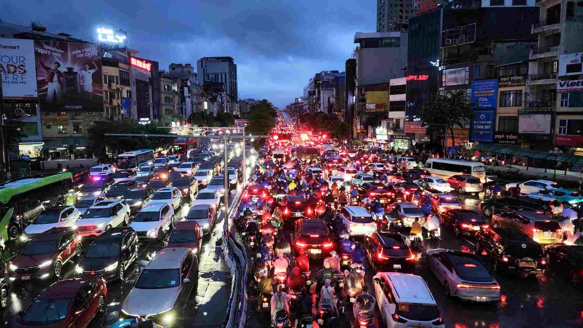 Hanoi - After 1:00 a.m. on October 1, many roads were still flooded, many workers could not return home.