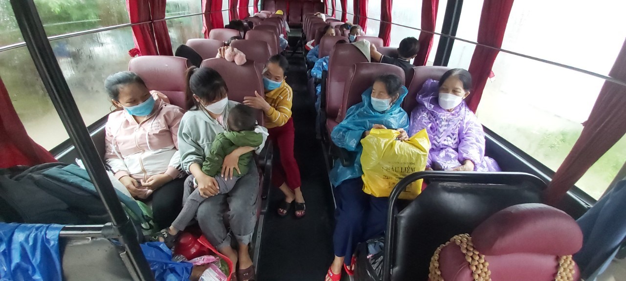 Từ sáng, các chuyến xe đầu tiên đưa bà con Quãng Ngãi đến các khu tập trung phòng, tránh bão số 4 đã lăn bánh.