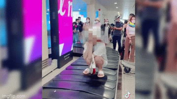 Theo nội dung clip đăng tải trên mạng xã hội Tiktok, một cô gái mặc đồ màu trắng, ngồi chống cằm trên băng chuyền hành lý. Trong khi đó có rất nhiều người đang đứng chờ xung quanh chiếc băng chuyền hành lý đó. Hiện chưa rõ đoạn clip trên được quay ở sân bay nào.