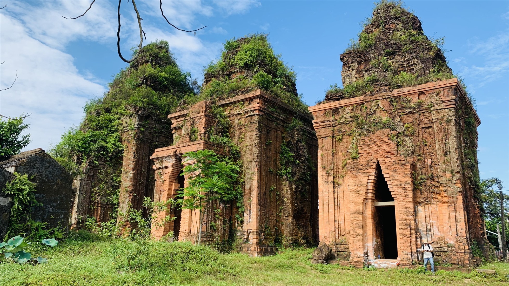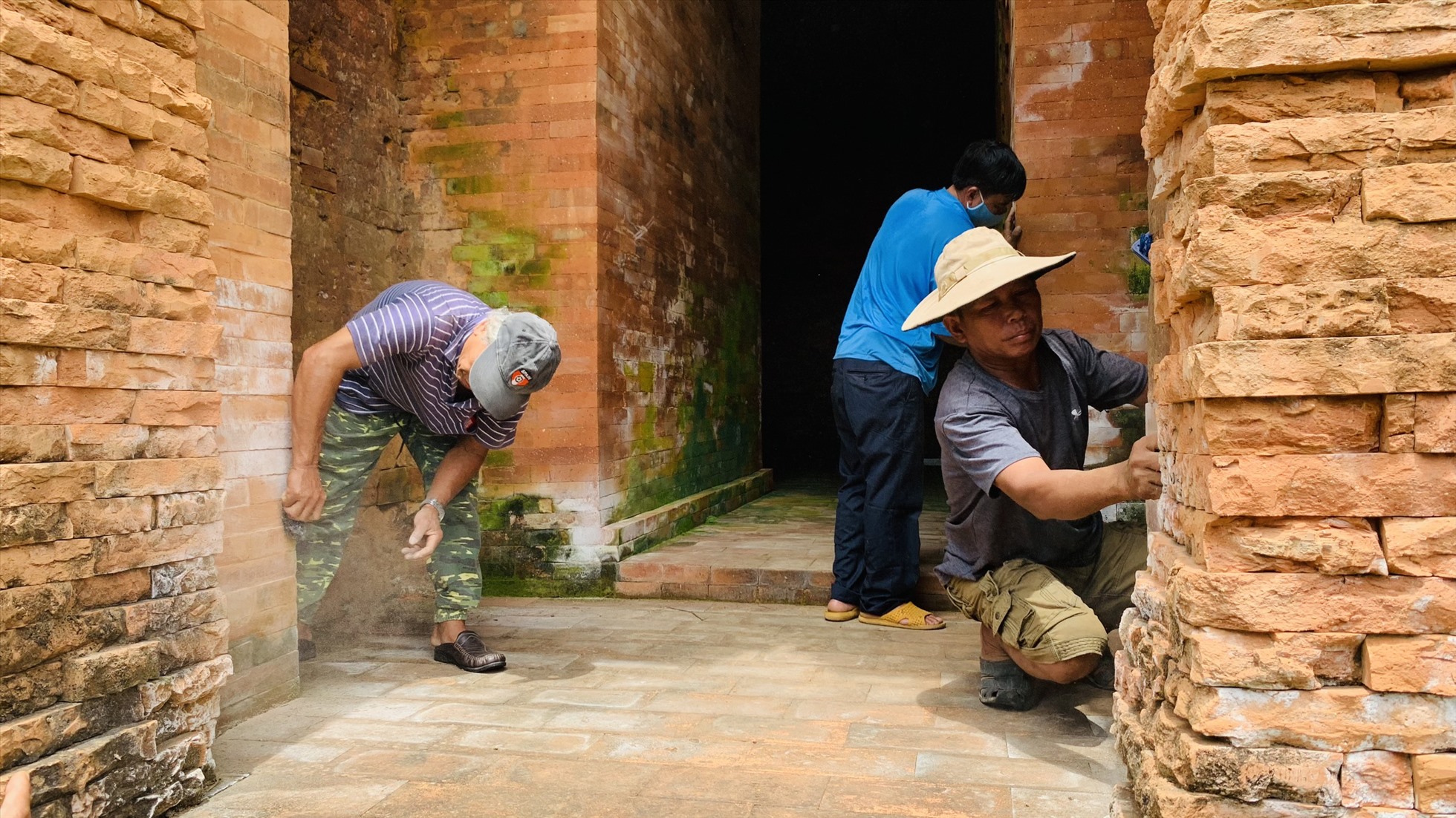HUE - Although the water has been drained, the foot of Cham Phu Dien tower is still damp, covered with green moss after many days of being soaked in floodwater.