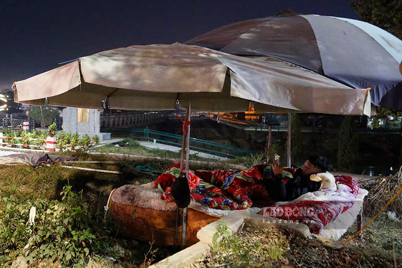 On the days before Tet, along Lac Long Quan Street (Tay Ho, Hanoi), many gardeners sell ancient peach trees at expensive prices ranging from tens to hundreds of millions of dong.