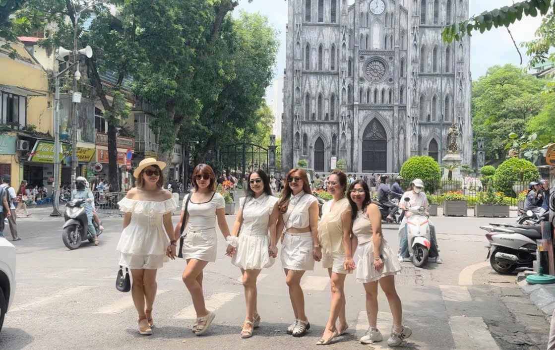 During the National Day holiday on September 2, at the Imperial Citadel of Thang Long, visitors can watch free water puppet shows. This activity attracts many young people to participate.