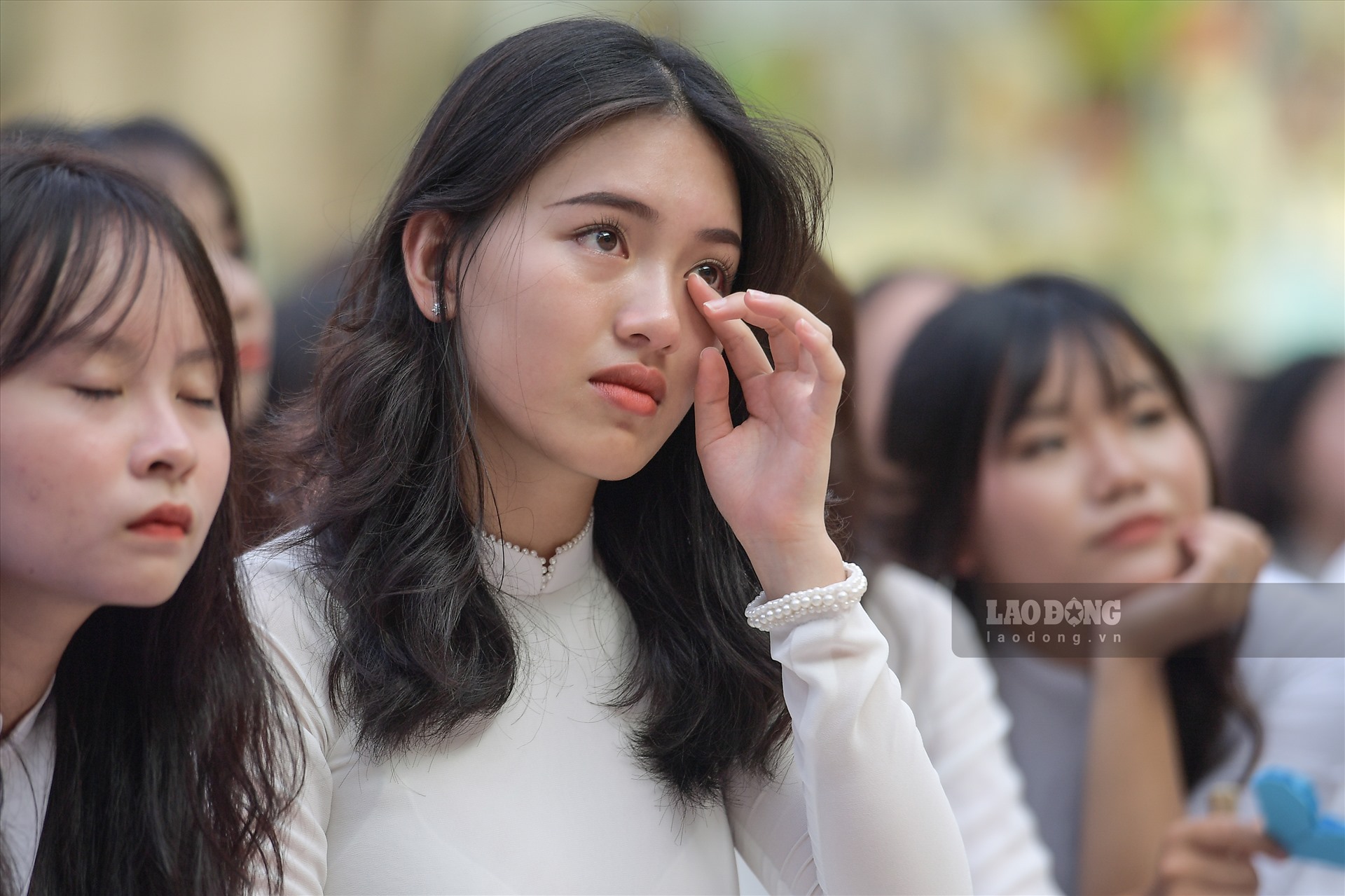 Nhiều học sinh khối 12 trường THPT Việt Đức (Hà Nội) không kìm được nước mắt trong buổi lễ bế giảng cuối cùng của đời học sinh.