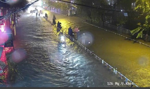 HUE - Many central streets of Hue City are deeply flooded, people have to wade through water to go to work on the first morning of the week.