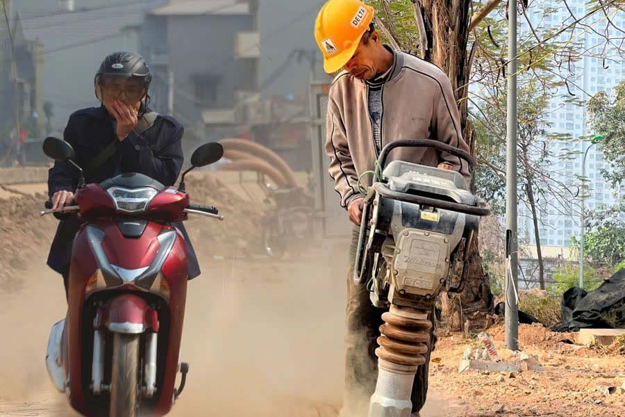 Pollution from large construction sites in Hanoi is a worrying issue, especially in densely populated areas with high traffic density.