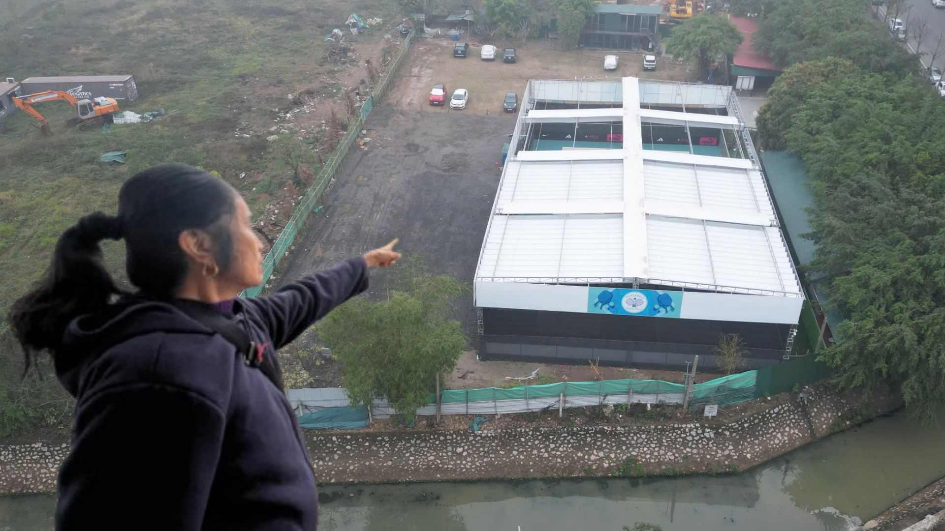 Hanoi - Happy Land pickleball court in Cua Chua pond, Phuc Loi, Long Bien was built on public land, not auctioned, with many signs of violations.