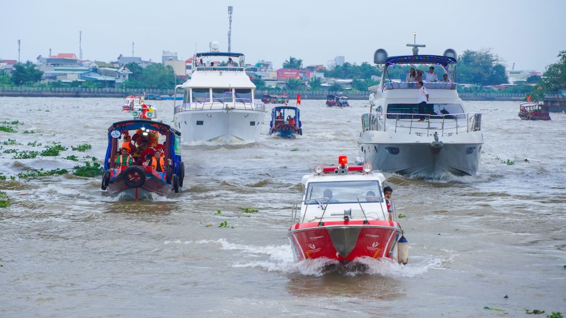 Can Tho - From Ninh Kieu wharf, many yachts and tourist boats bustlingly parade on Can Tho river to Cai Rang floating market.