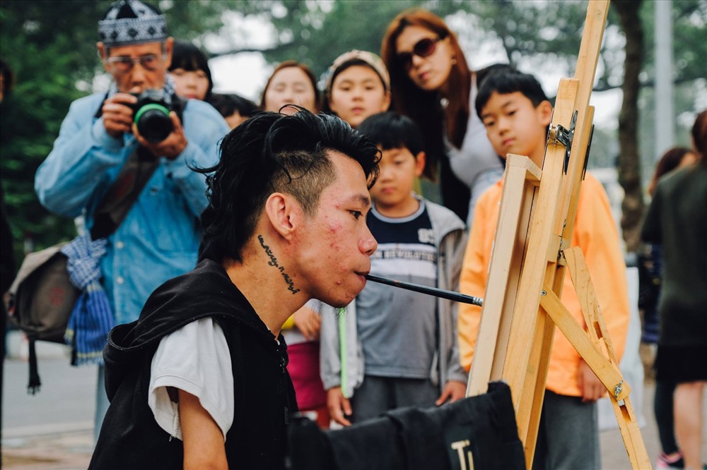 Người Hà Nội khâm phục tài năng của họa sĩ khuyết tật vẽ tranh bằng miệng