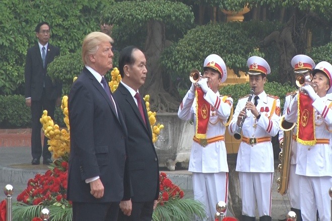 Sáng 12.11, Chủ tịch Nước Trần Đại Quang đã chủ trì lễ đón trọng thể Tổng thống Mỹ Donald Trump trong khuôn khổ chuyến thăm cấp nhà nước đến Việt Nam.