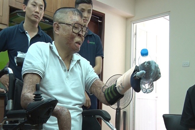 Sau khi được lắp tay giả, anh Đinh Văn Dương không chỉ có thể dùng tay để hỗ trợ sinh hoạt thường ngày mà anh còn có mong muốn được viết cuốn tự truyện về cuộc đời mình bằng chính đôi tay này.