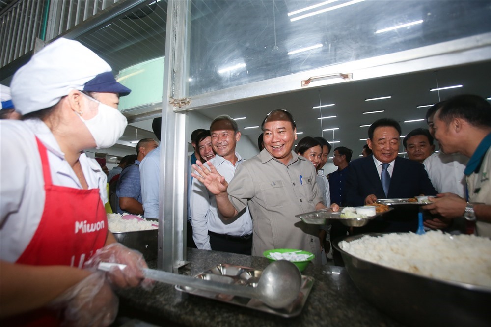 Đúng 17h chiều (28.10), trong khuôn khổ chương trình kiểm tra thực hiện chính sách đối với công nhân lao động, Thủ tướng Nguyễn Xuân Phúc đã kiểm tra bếp, nhà ăn của Cty Teakwang Vina (TP Biên Hòa, tỉnh Đồng Nai). Sau khi kiểm tra, Thủ tướng đã tận tay mang một phần cơm của công nhân và cùng thưởng thức với các công nhân lao động tại nhà ăn của công ty.
