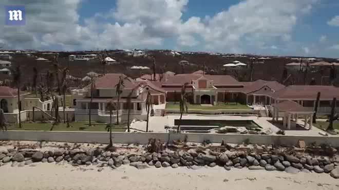 Một đoạn flycam được đăng tải ghi lại cảnh khu biệt thự triệu đô của ông Donald Trump tại đảo St.Martin tan hoang sau khi phải hứng chịu trận siêu bão Irma có sức gió tới 300km/giờ. Khu biệt thự này trị giá hơn 16,9 triệu từng được ông Trump tự hào khẳng định là “một trong những nơi nghỉ dưỡng tuyệt vời nhất thế giới”.