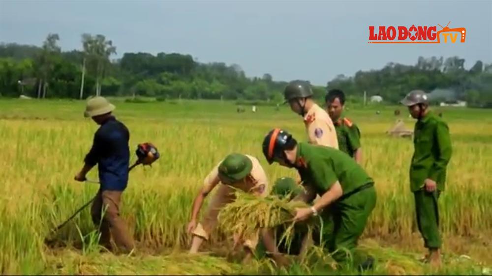 Công an hối hả giúp dân gặt lúa chạy bão số 10