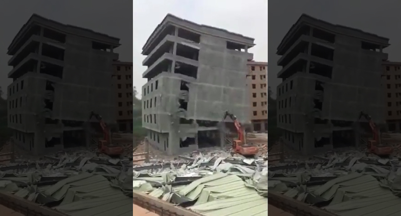 Trong quá trình phá dỡ, tòa nhà 7 tầng đột ngột đổ sập, chôn vùi máy xúc cùng tài xế bên trong. Sự cố khủng khiếp này xảy ra hôm 15.4 tại công trường xây dựng ở thành phố Phật Sơn, tỉnh Quảng Đông, Trung Quốc. Tài xế lái máy xúc may mắn thoát chết.