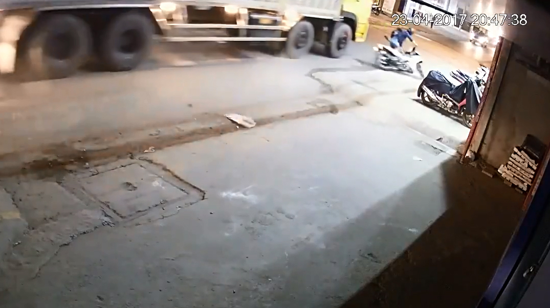 Nam thanh niên đi xe máy cố vượt xe tải, vấp phải chướng ngại vật, ngã ra đường bị cán thiệt mạng tại chỗ. Sự việc xảy ra vào khoảng 20h45 tối 23.4 trên quốc lộ 1A đoạn qua phường Thạnh Xuân, quận 12, TP.HCM.
