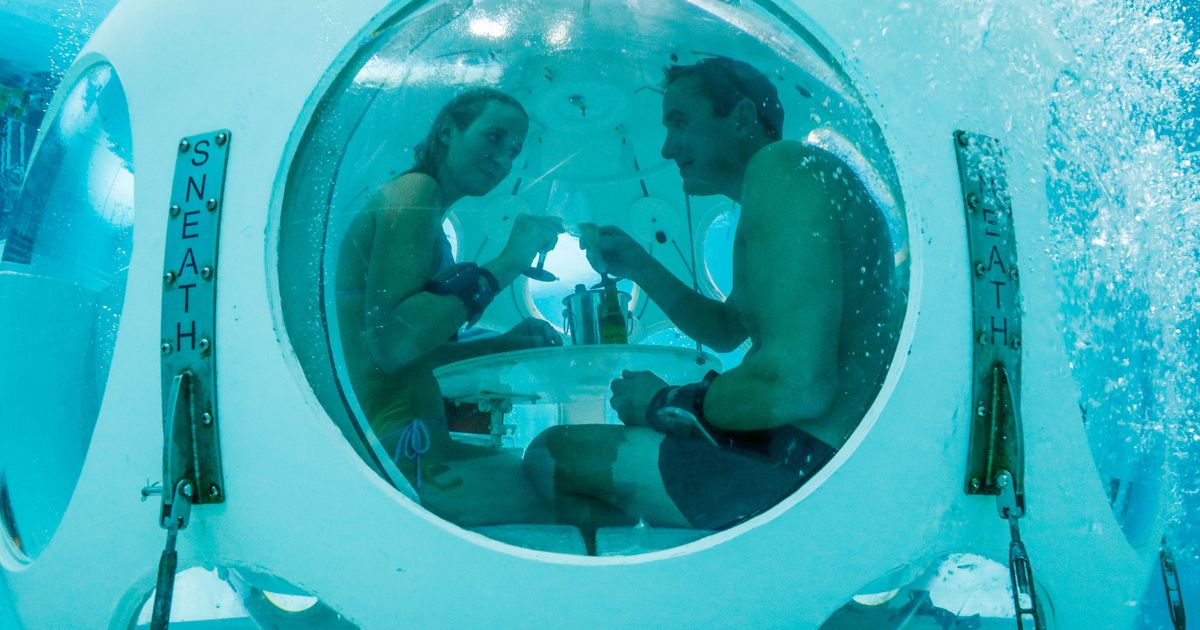 Khi đã quen dần với những nhà hàng được xây ở những nơi có độ cao cách mặt đất cả trăm mét, những thực khách tại Bỉ đang tìm đến một nơi độc đáo hơn, đó là đáy hồ bơi sâu 5m để thưởng thức các món ăn đặc biệt. Với chi phí chỉ khoảng 2,5 triệu đồng, những "thượng đế" tại nhà hàng đặc biệt này có thể trải nghiệm cảm giác không nơi nào khác trên thế giới có thể mang lại.