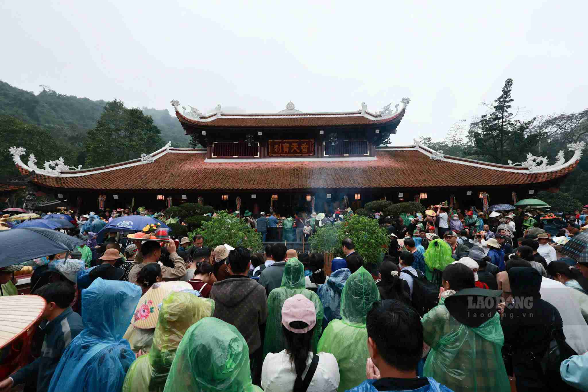 Pilgrims from all directions brave the rain to worship Buddha and admire Bai Dinh Pagoda on the opening day of the festival