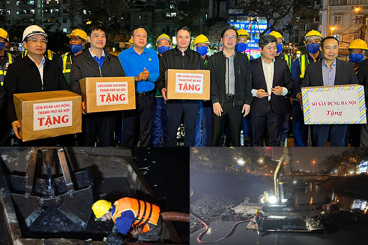 Hanoi - Workers of Hanoi Drainage One Member Co., Ltd. are striving to complete the dredging of To Lich River before August 2025 as assigned by the Hanoi People's Committee.
