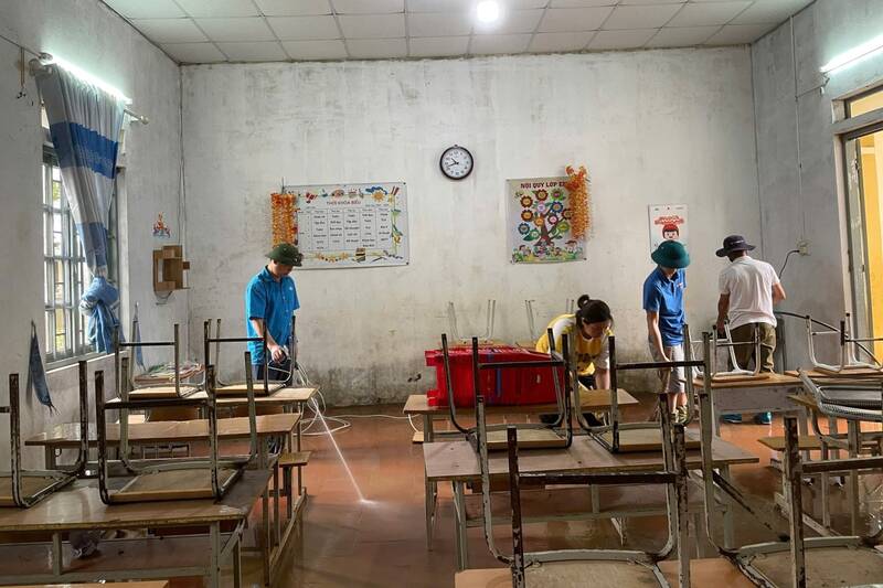 At Muong Do Primary and Secondary School for Ethnic Minorities, floodwaters collapsed 70m of fences, damaged drainage pipes, and flooded many classrooms and boarding areas. The authorities mobilized forces to clean up so that students could return to school on October 1.