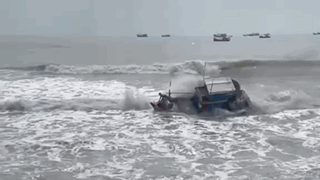 About 1 hour later, the fishing boat BTh 80643TS with a capacity of 24Cv came ashore and was also sunk by large waves at the entrance of La Gi port. The 3 workers on board swam safely to shore.