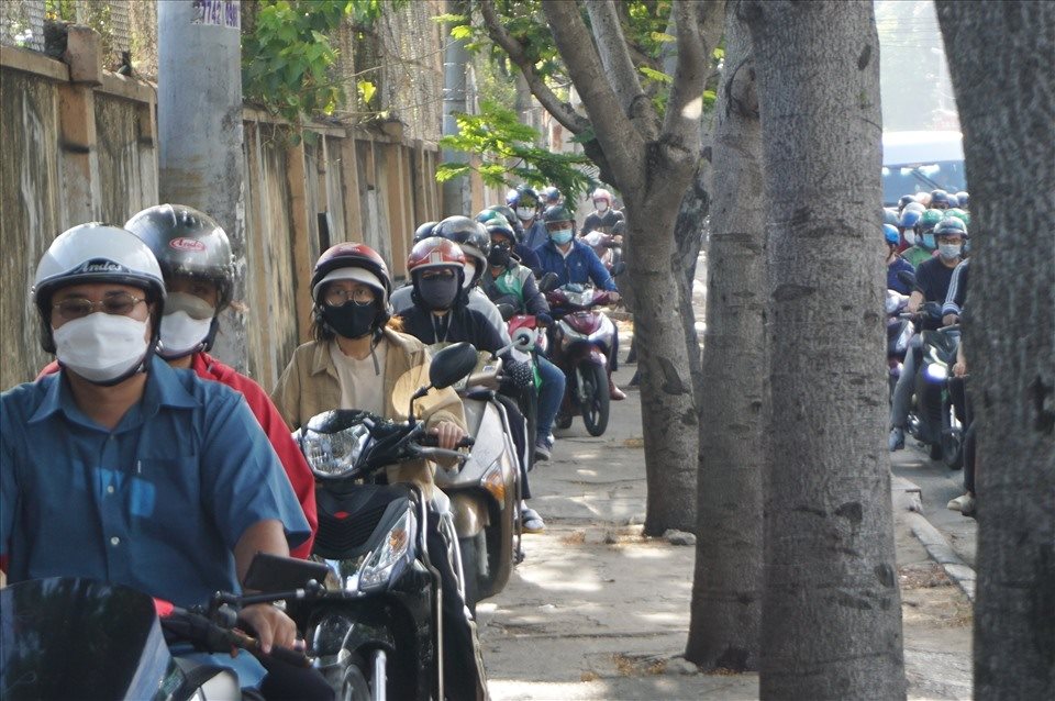 During rush hour in the morning, the traffic is dense on Nguyen Tat Thanh Street - the main route connecting the South with the city center.