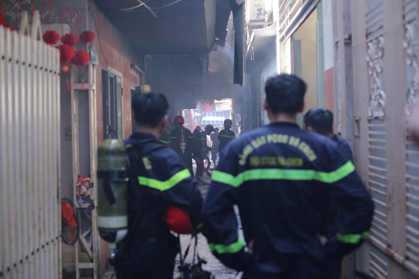 Upon arriving at the scene, they discovered a fire occurring in the kitchen area on the first floor, which had spread to the upper floors. Immediately, the forces of the two units implemented two A-type and two B-type ladders to approach the main entrance via the staircase and through the roofs of adjacent households to organize firefighting efforts. The fire was extinguished around 4h on the same day; the forces continued to spray water to cool down and organize smoke evacuation until 5h on the same day, when all firefighting activities were completed.