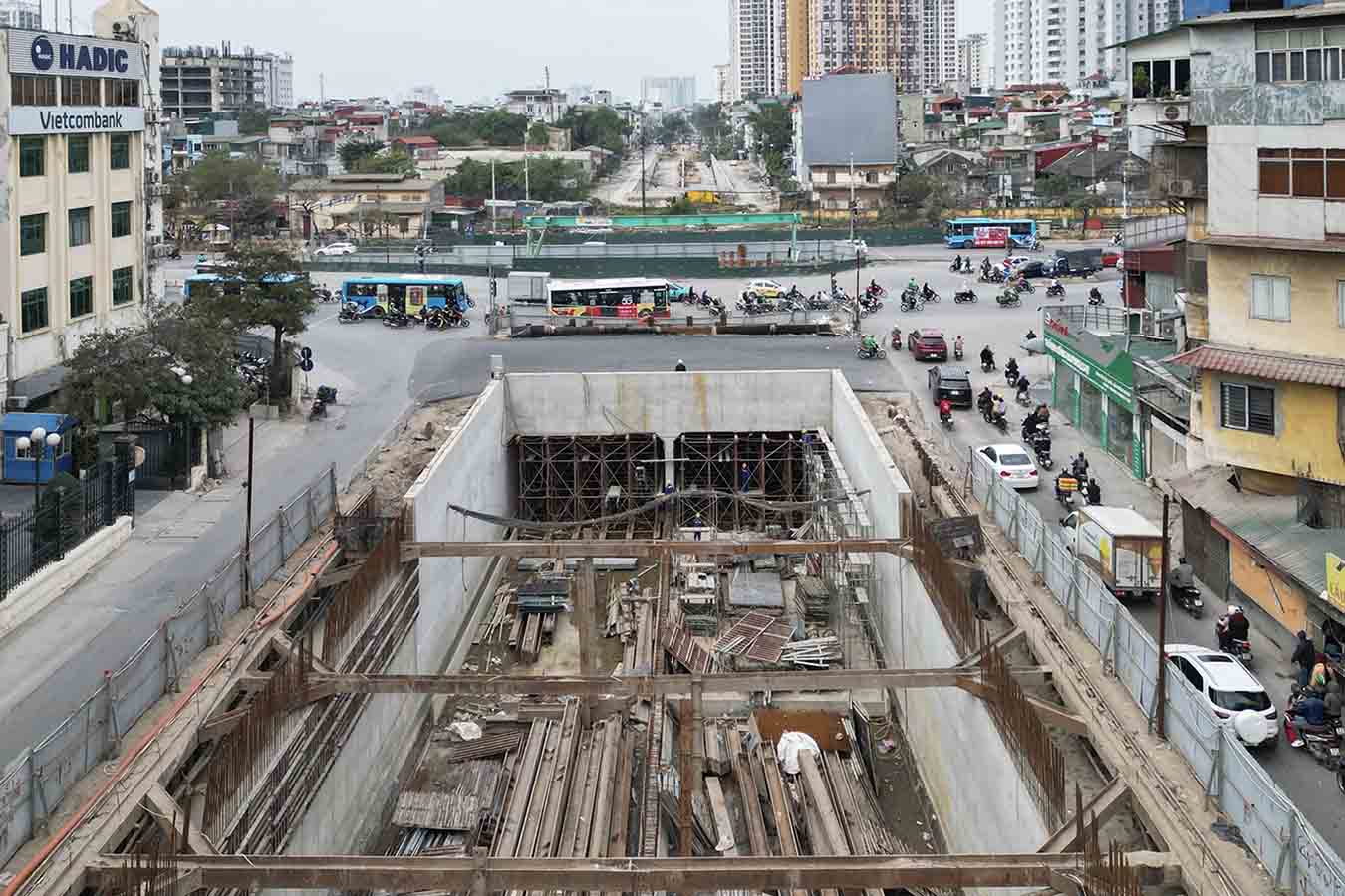 Image of the 5th underpass construction site in Hanoi after Tet