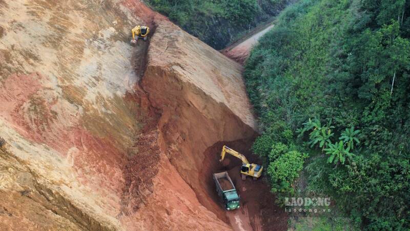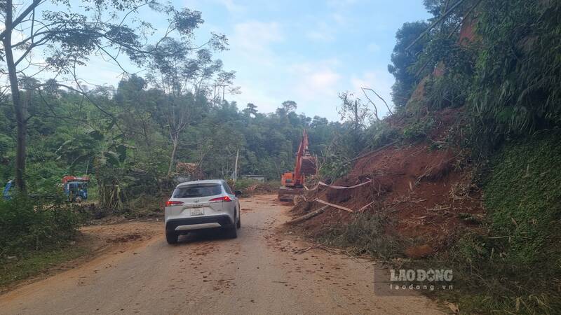 On November 4, speaking with a reporter from Lao Dong Newspaper, Mr. Pham Le Nguyen - Chairman of the People's Committee of Thuong Minh Commune said that at the landslide location at Km14+600 of DT 258, the authorities under the Department of Construction are continuing to repair and handle the landslide.