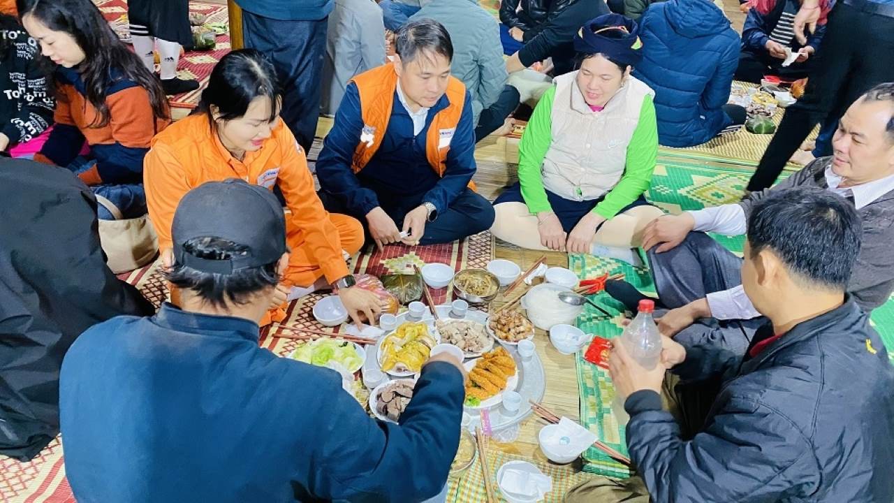 To celebrate the village having electricity, people in the village invite each other to contribute labor and rice, go to the village head's house to slaughter pigs together, eat a year-end meal, and celebrate the village having national grid electricity. In that joy, people do not forget to thank the electricians and the electricity industry for bringing light to the people.
