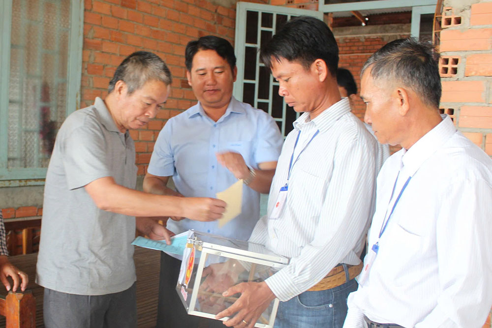 Recorded in Long Phuoc commune, from early morning many voters were present at the polling stations. Thanks to early propaganda deployed in many forms such as loudspeakers, banners, posters and direct mobilization in residential areas, people have clearly grasped the process and meaning of election day.