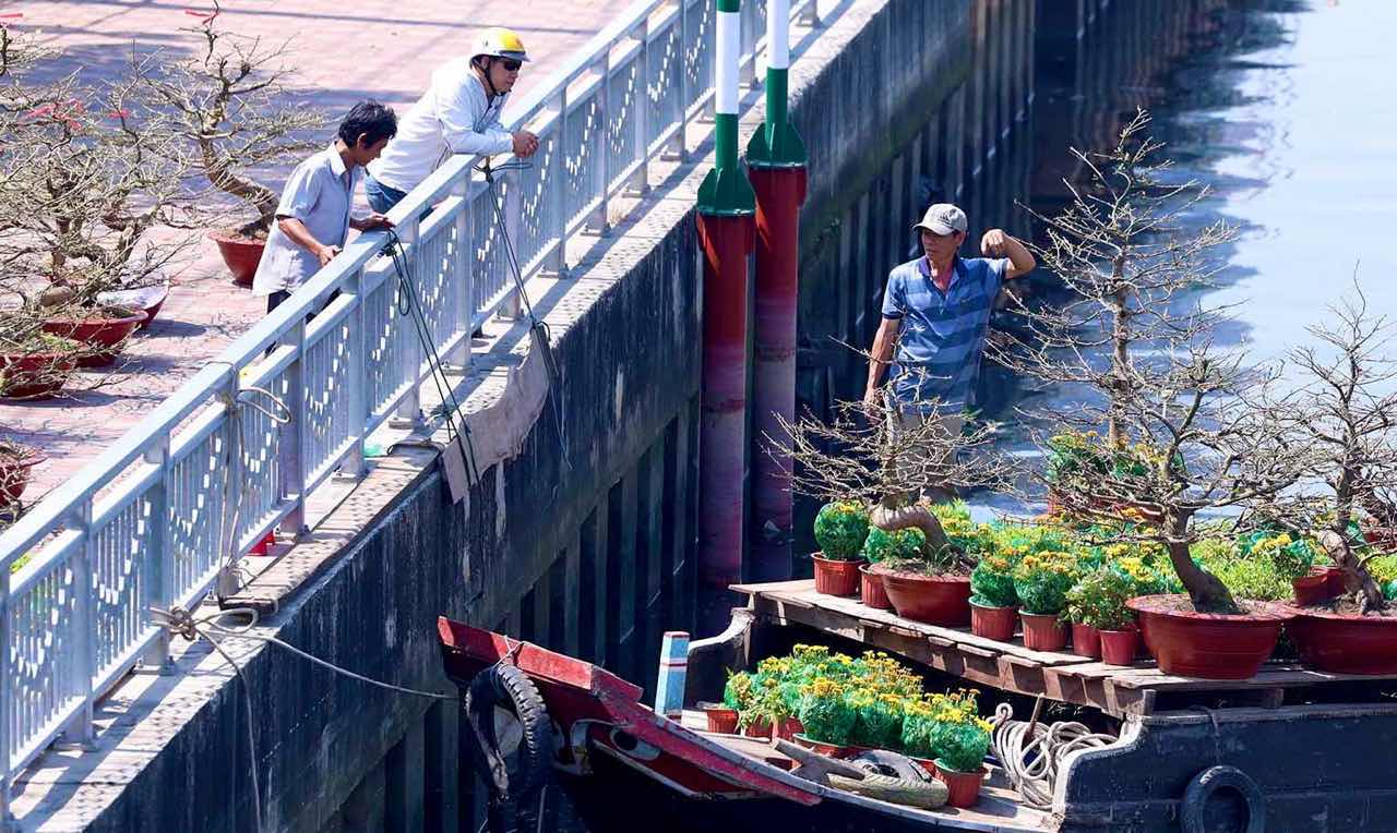 According to the schedule, the Spring Flower Market On the Wharf and Boat of Binh Ngo Tet 2026 will officially open on February 12, but to promptly serve the early sightseeing and shopping needs of city residents, small traders have been busy arranging goods right from this moment.