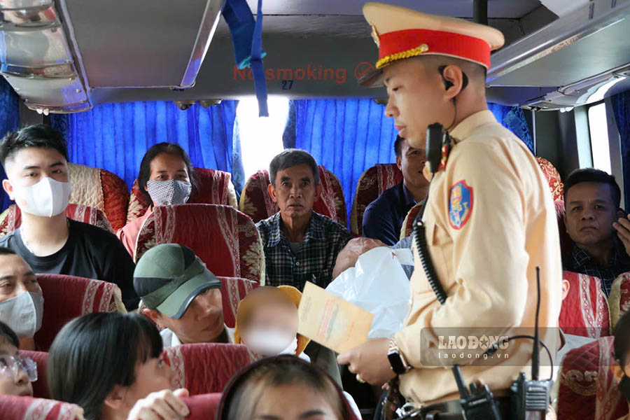 According to the Traffic Police Department (CSGT) of Hanoi City Police, right before the holiday, the authorities conducted a general inspection of passenger transport vehicles in and around the bus station area. Tightening inspections aims to detect and handle violations, while preventing early risks of causing traffic accidents.