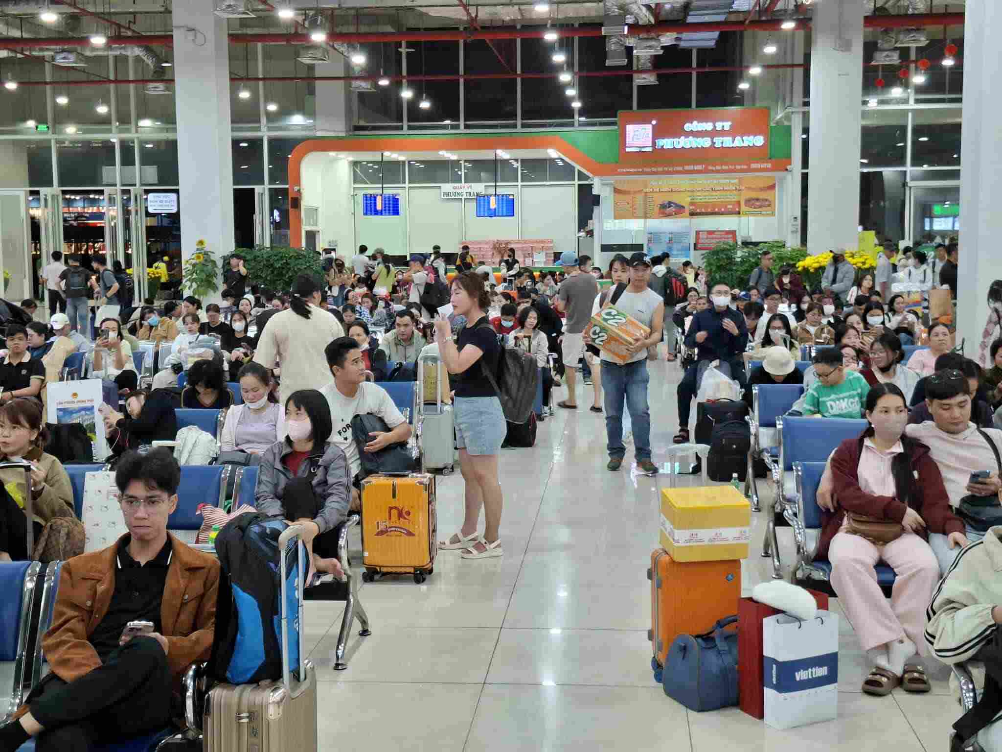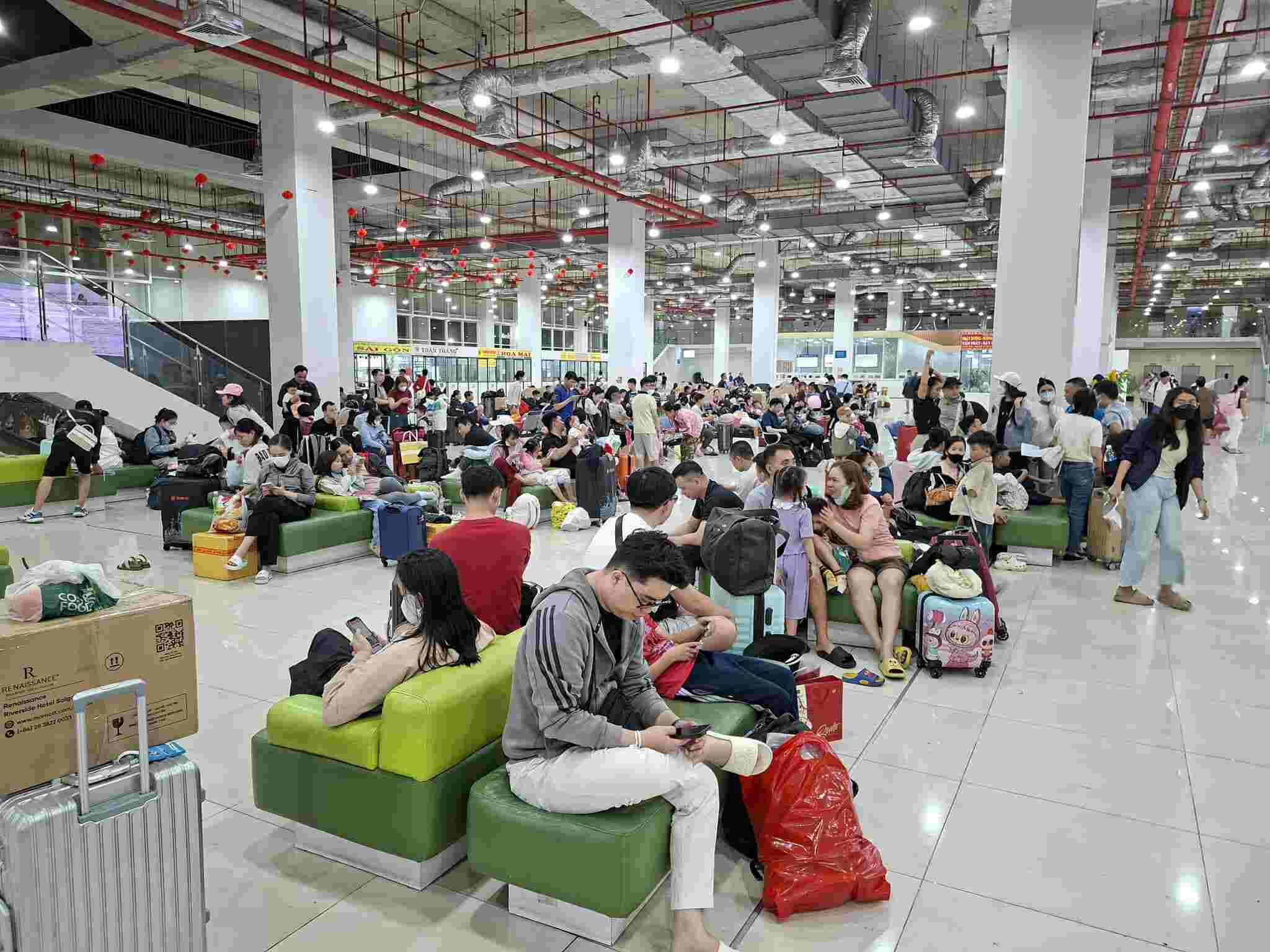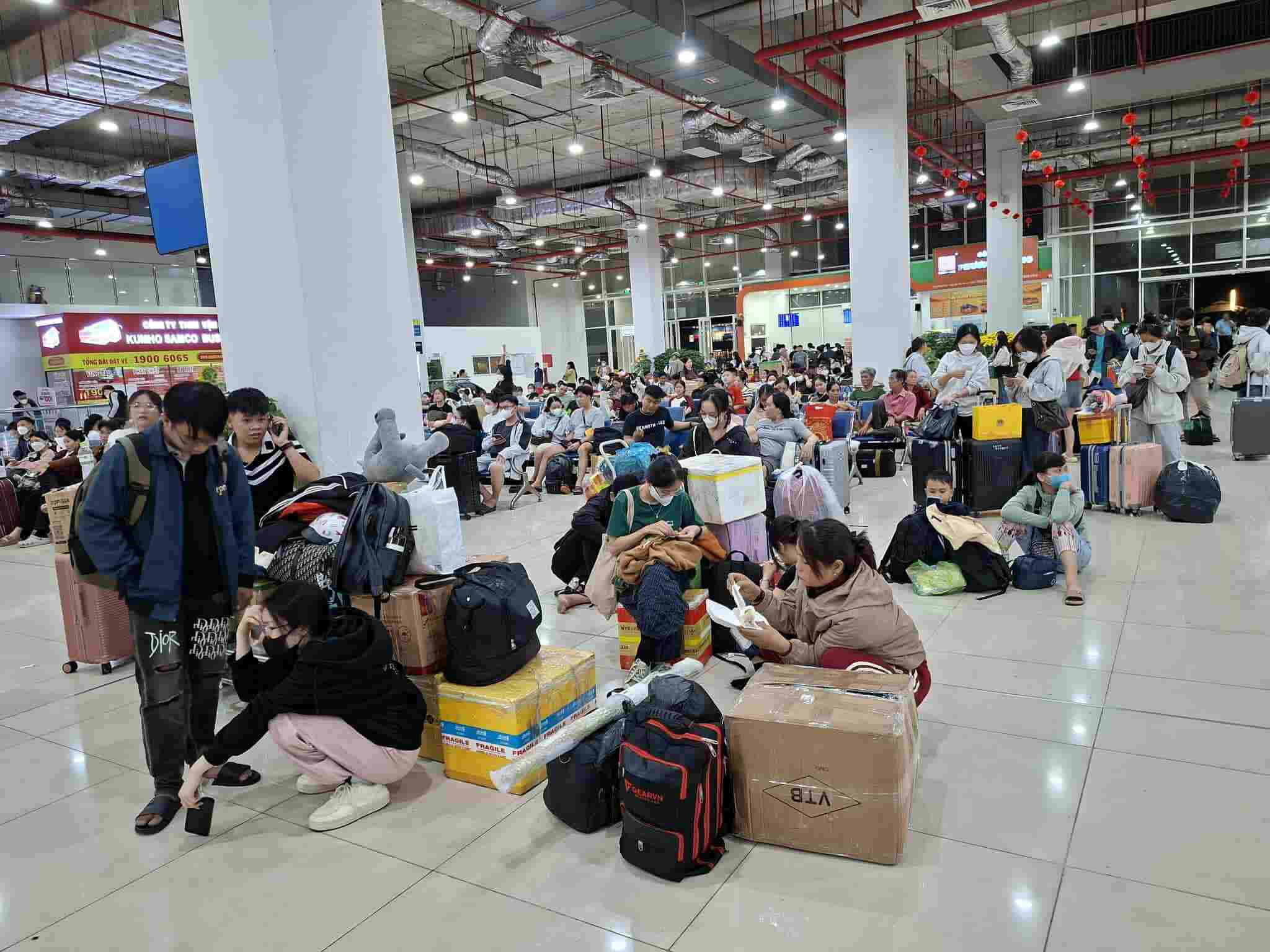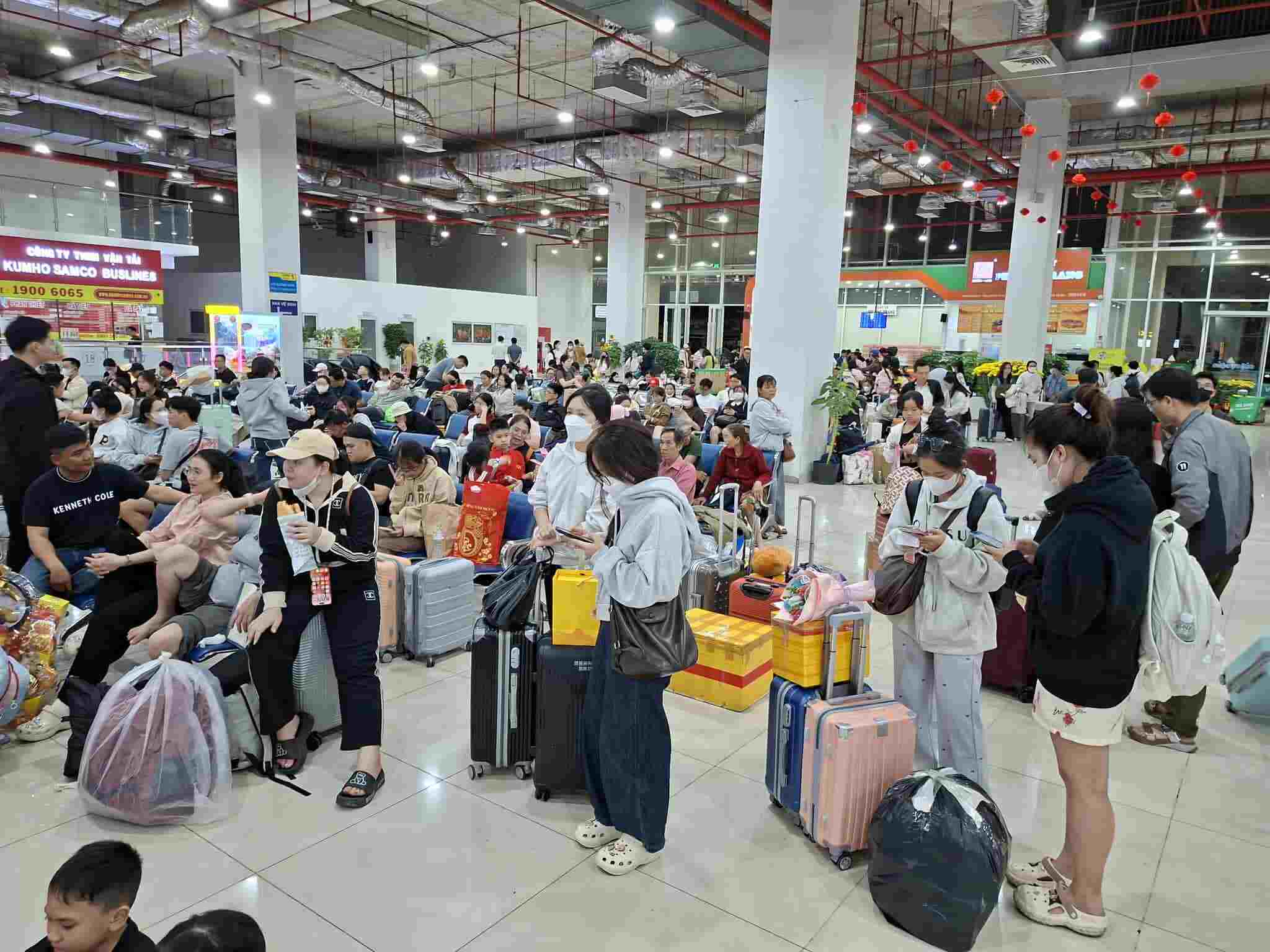 From about 7 pm, the waiting area was almost empty. The rows of seats were full, many passengers had to wait, one hand pulling suitcases, the other carrying Tet gifts.