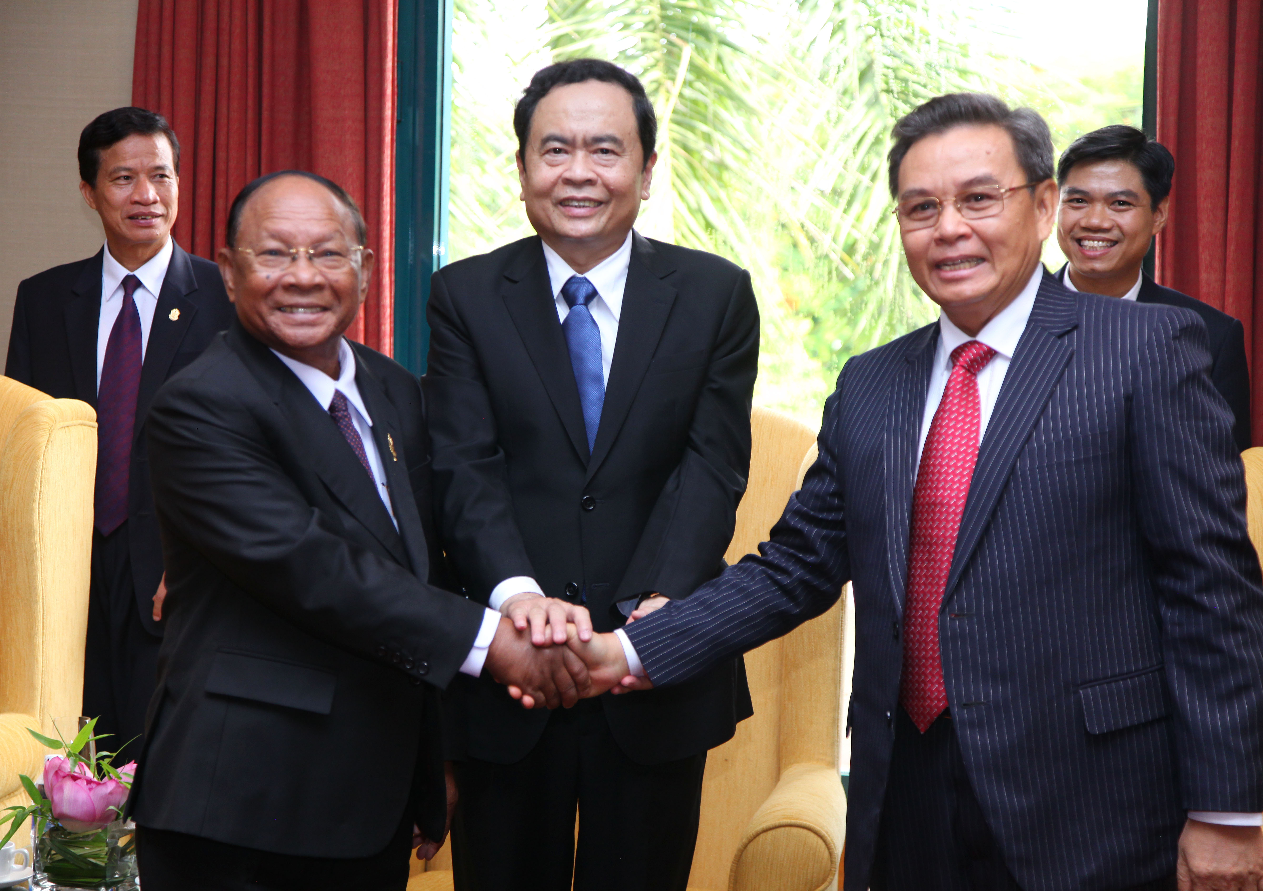 Đồng chí Trần Thanh Mẫn - Ủy viên Trung ương Đảng, Chủ tịch Ủy ban Trung ương Mặt trận Tổ quốc Việt Nam; Đồng chí Xay-xổm-phon Phôm-vi-hản - Ủy viên Bộ Chính trị Đảng Nhân dân Cách mạng Lào, Chủ tịch Ủy ban Trung ương Mặt trận Lào xây dựng đất nước; Bà Men Sam An - Phó Thủ tướng chính phủ Hoàng gia Vương quốc Campuchia, Chủ tịch Hội Hữu nghị Campuchia – Việt Nam tham dự.