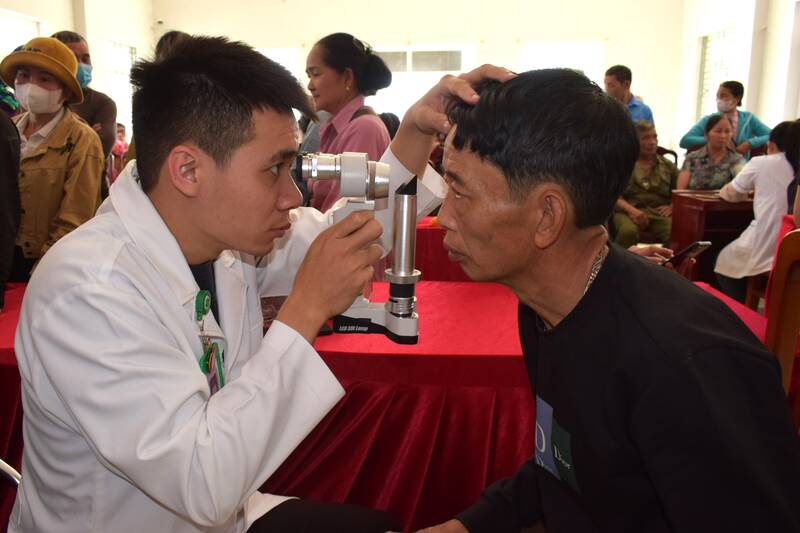 Ms. Ha Thi Hien, Chieng Nua village shared: "Being able to have doctors measure blood pressure, examine my eyes and dispense medicine for free, I am very happy. I thank the working delegation for their concern for the people in the border area.