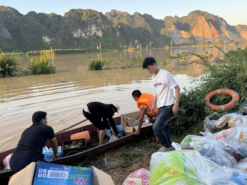 In Van Nham commune, Mr. Nguyen Quoc Huy (Tan Nhien village, Van Nham commune) and young men in the village swam boats to receive relief goods.