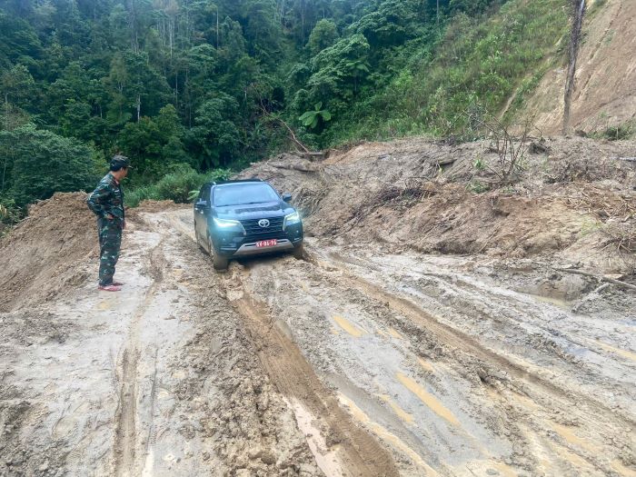 The mobile road from the Hung Son Commune Military Command to the scene has more rocks and landslides due to prolonged heavy rain, posing a potential risk of further landslides.