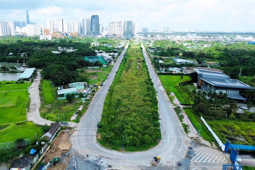 The starting point of the route connecting with Mai Chi Tho and Vo Nguyen Giap Boulevards has been cleared with 6 lanes, ready for operation. When completed, the route will help shorten about 4 km from Cat Lai intersection to Lien Phuong - Do Xuan Hop intersection, reducing the load on the main roads that are often congested due to the high density of trucks and container trucks.